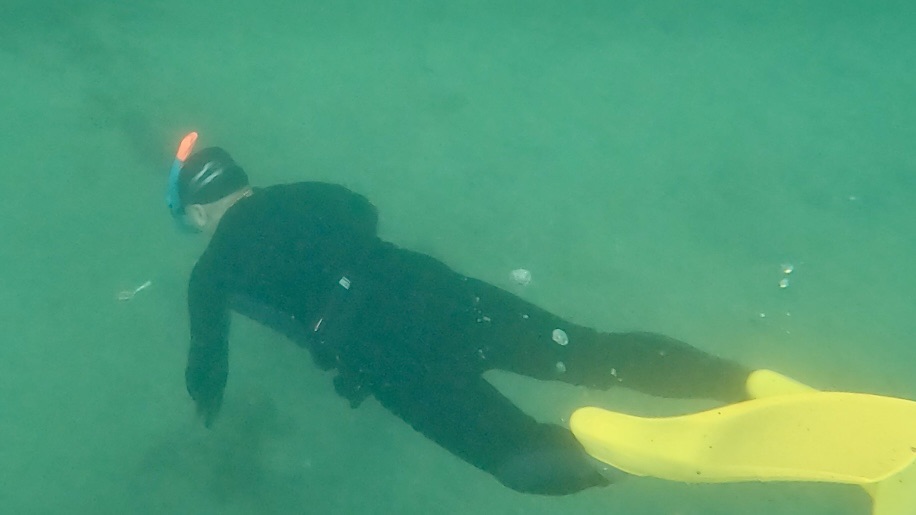 真夏より減りましたが、それでも沢山のスクーバダイバーさんが!本日も気をつけて練習しましょう。ポイントに移動してみると、思いのほか波と流れがありますね。約4mの底は見えています。プールとの違いが身に染みる、よい練習になります。認定講習の項目を途中まで進め一旦おやつ休憩。午後は少し雨が降り始めましたが練習練習。3名でバディを組んでいただき、引き上げや曳航も頑張りました!お疲れ様でした!本日の練習で手応えを感じた方、苦手なことが見えた方、この練習会の内容をよく思い出していただき、今後の練習を進めてゆきましょう!