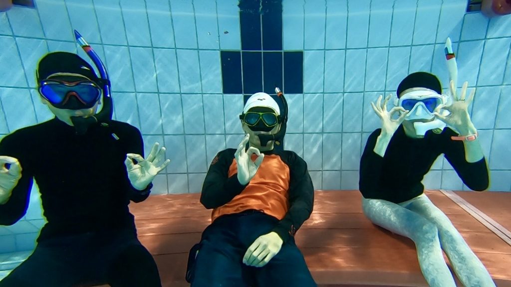 どうも!年内最後のOSCグループレッスン!(プライベートレッスンはありますよ♪)今日は朝から都内にあります水深1.4mプールで、スノーケリング・スキンダイビング講習会の応用編を開催!3名様にご参加いただきました!(^_-)-☆