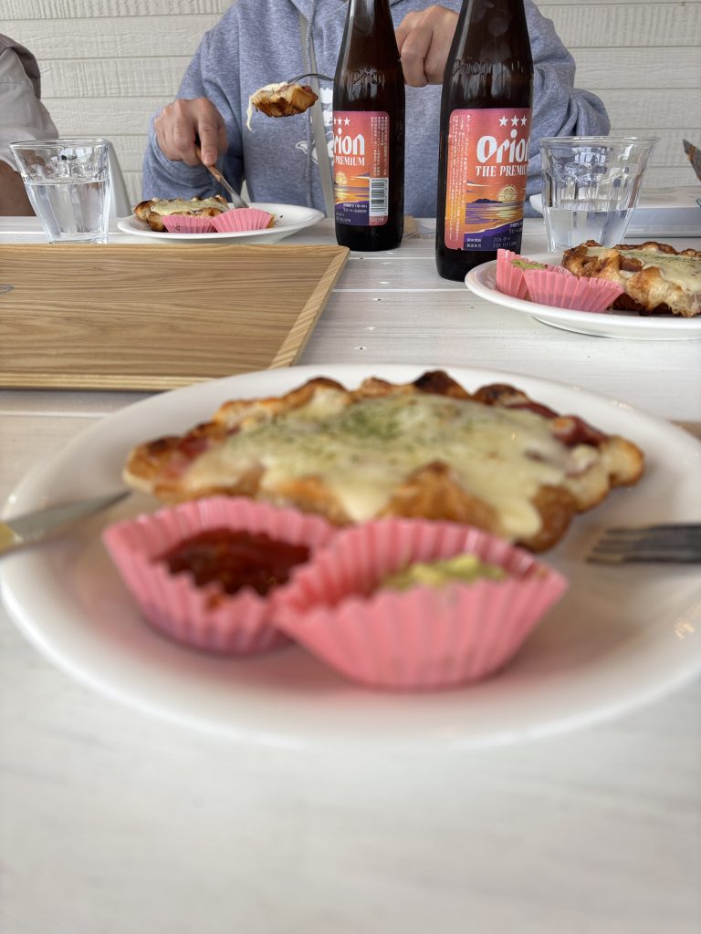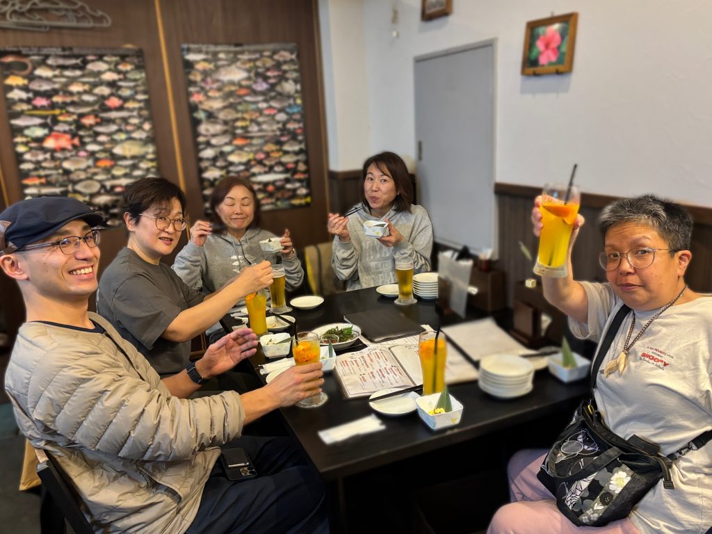 予定は未定。素敵カフェに寄り、「可愛い〜」の連発買い物しまくり。美味しいオヤツをいただき、教えていただいた別のお店へ。アーティストさんの作品が素敵なお店でまたも色々購入。美味な黒糖が購入できる工場へも行き、ホテルへチェックイン。濃い。一旦落ち着いて夕食。平日でも予約で満席のお店で、とても美味しく楽しかったですね〜(ㅅ´³`)